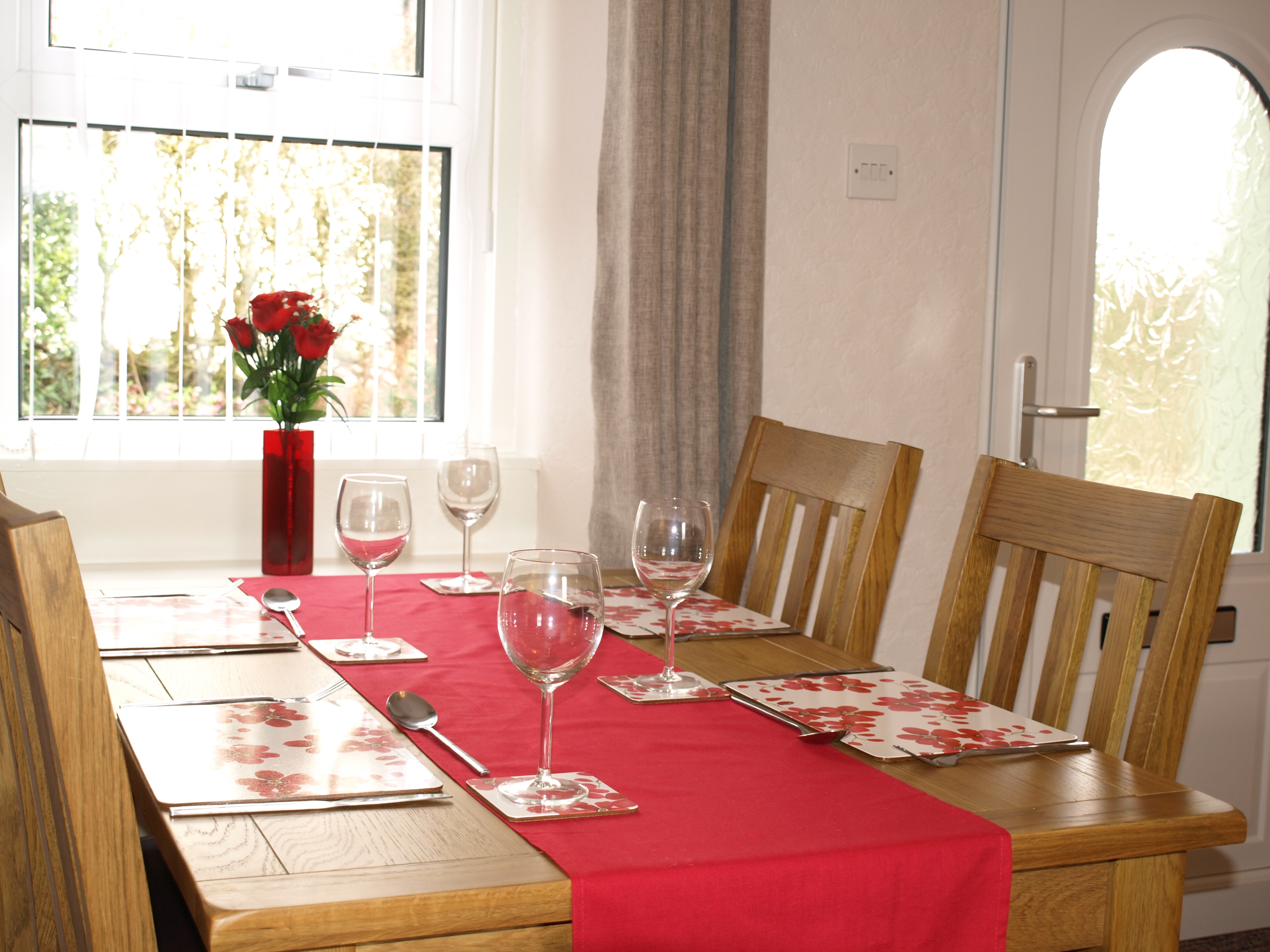 The dining area has seating for four people. Access to the patio with good views.